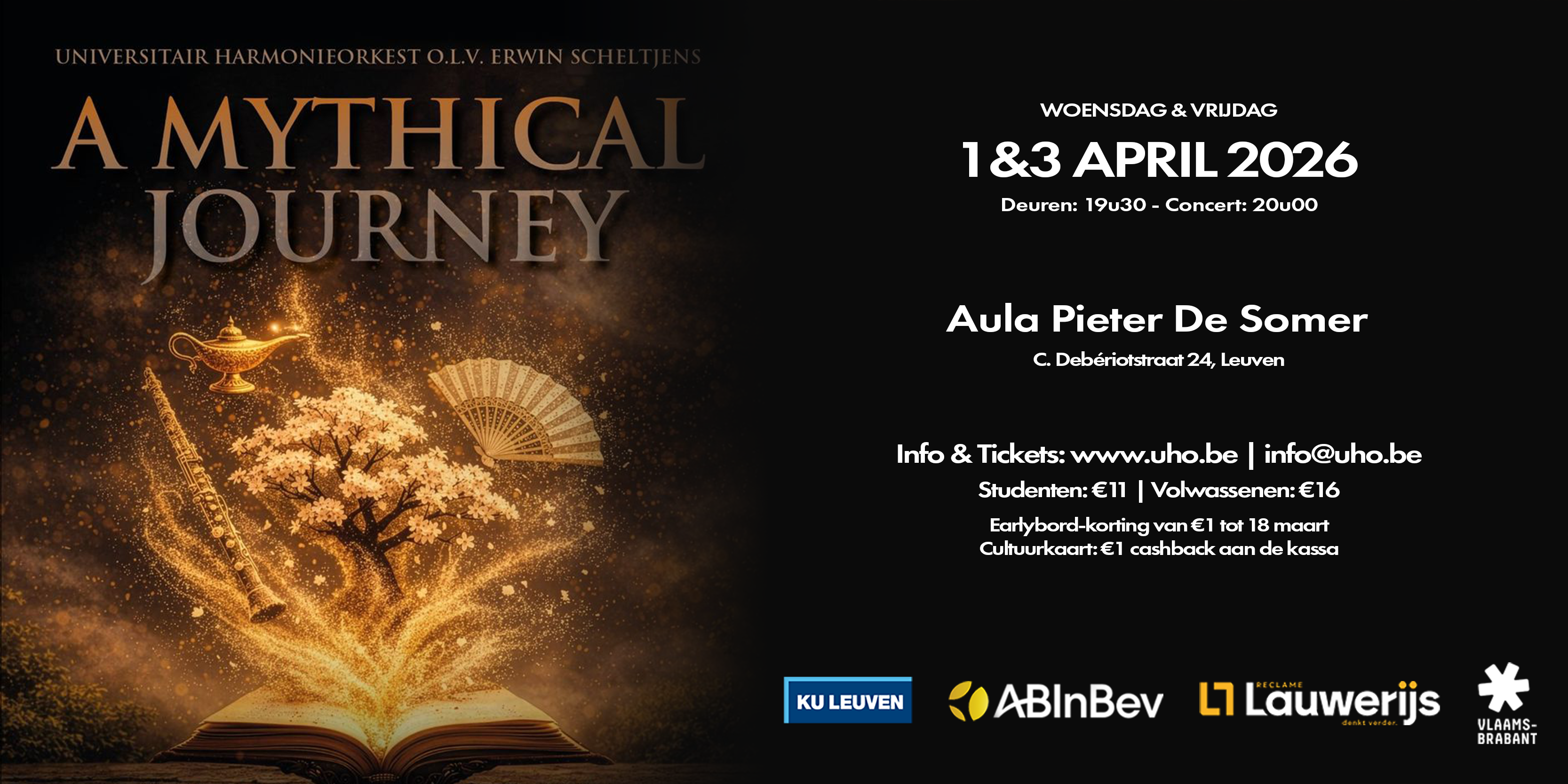 onze aulaconcerten ‘A Mythical Journey’ op woensdag 1 en vrijdag 3 april.